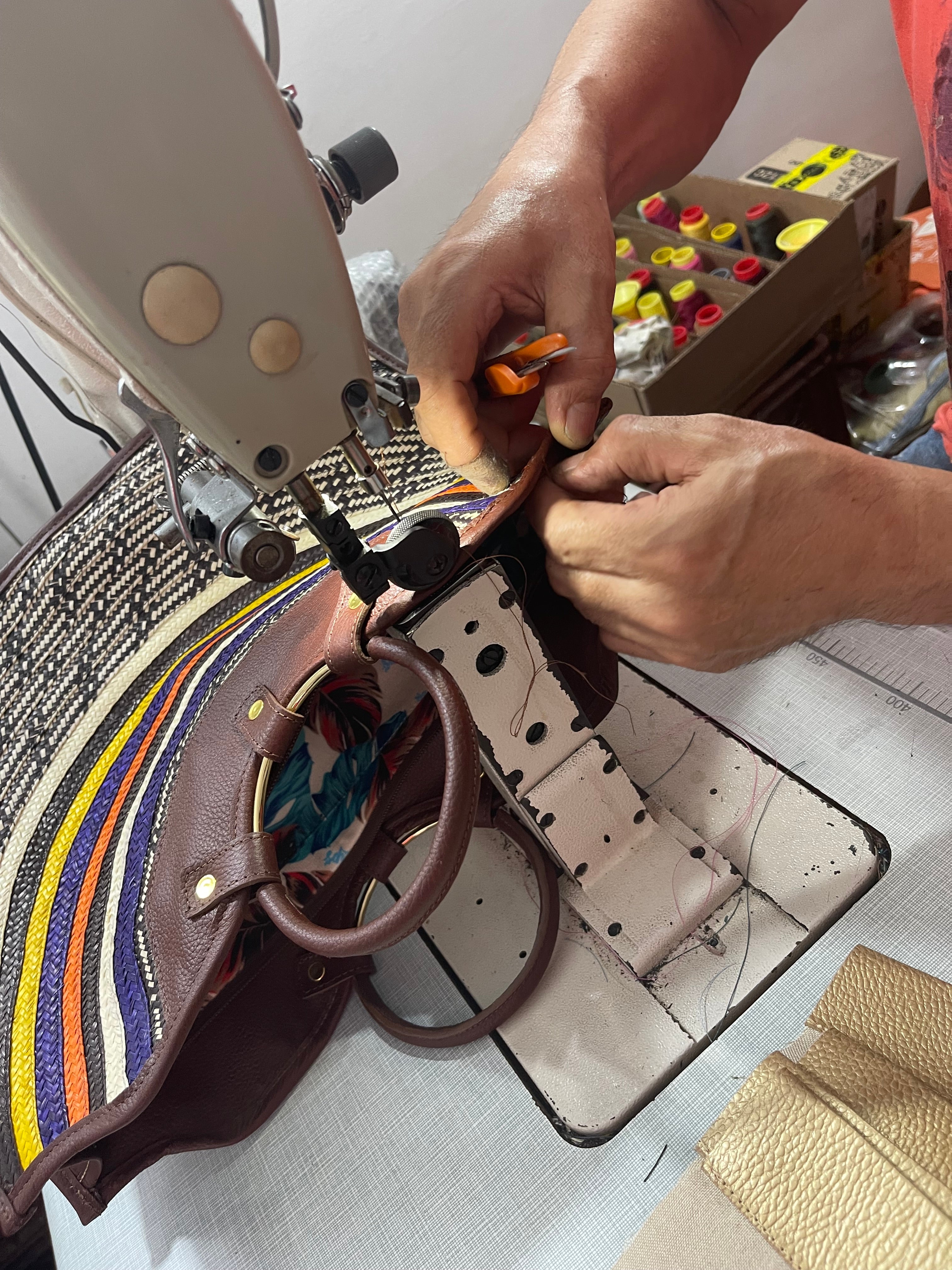 The woven pieces are integrated into contemporary designs, creating handbags where tradition meets modern luxury.