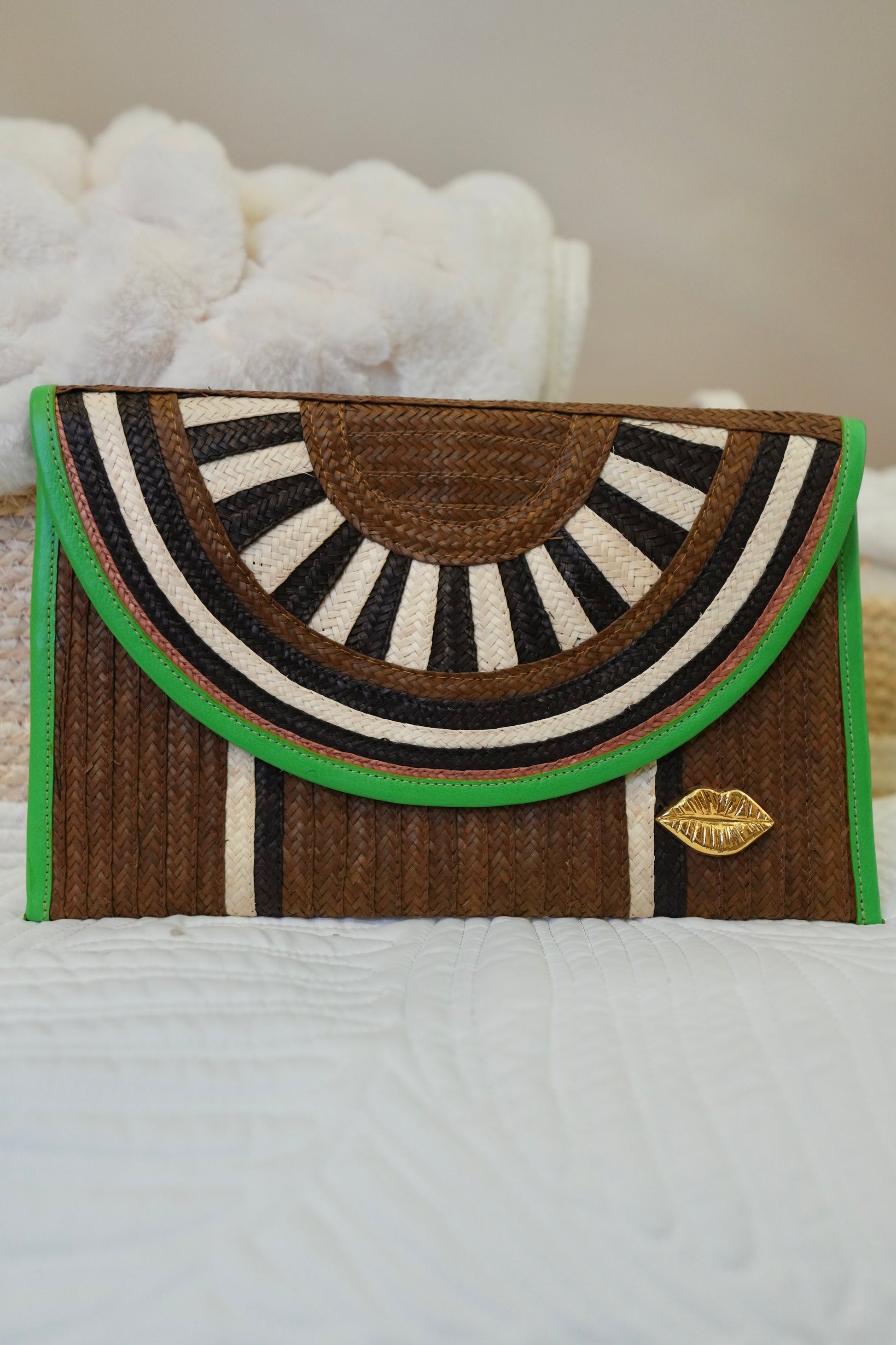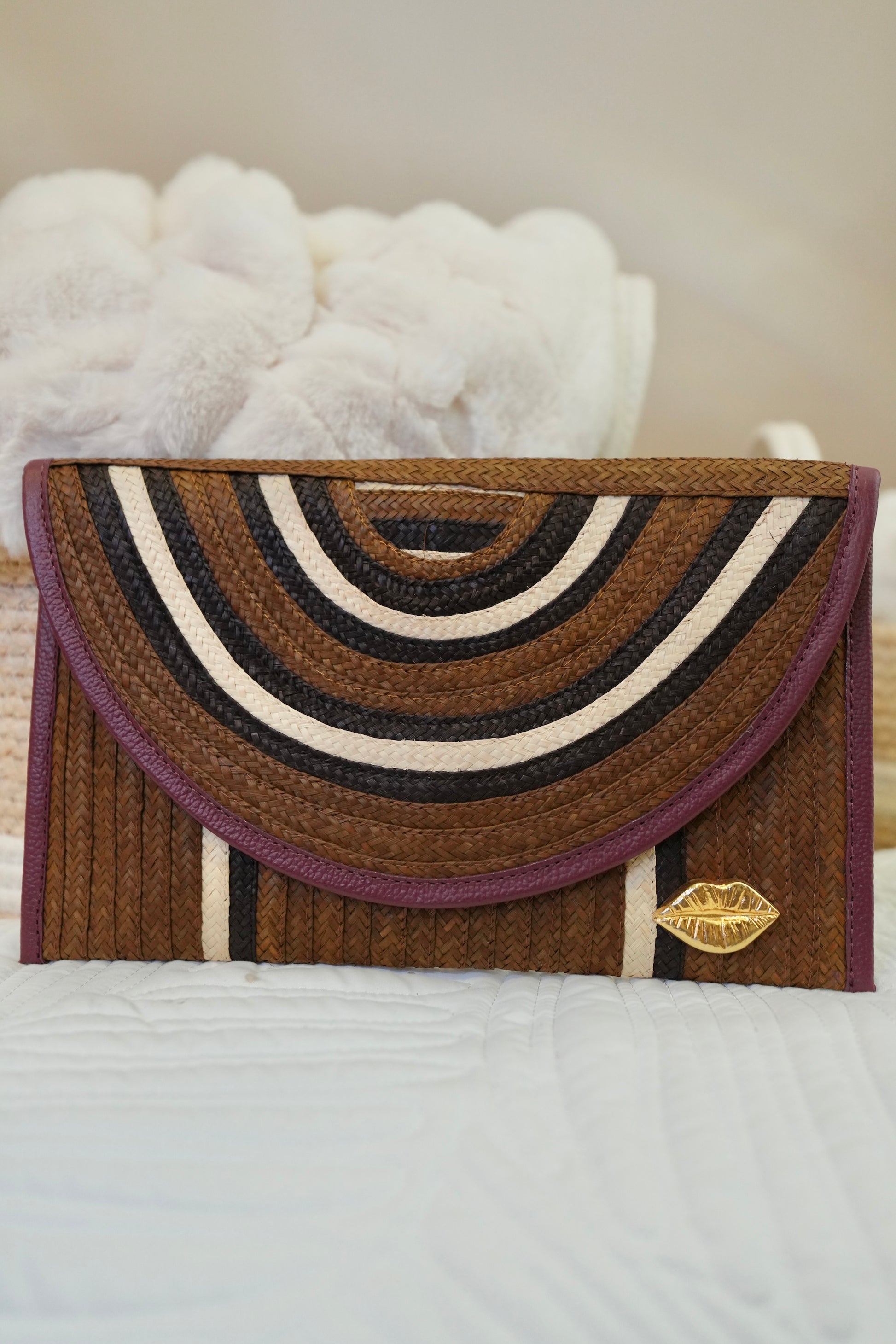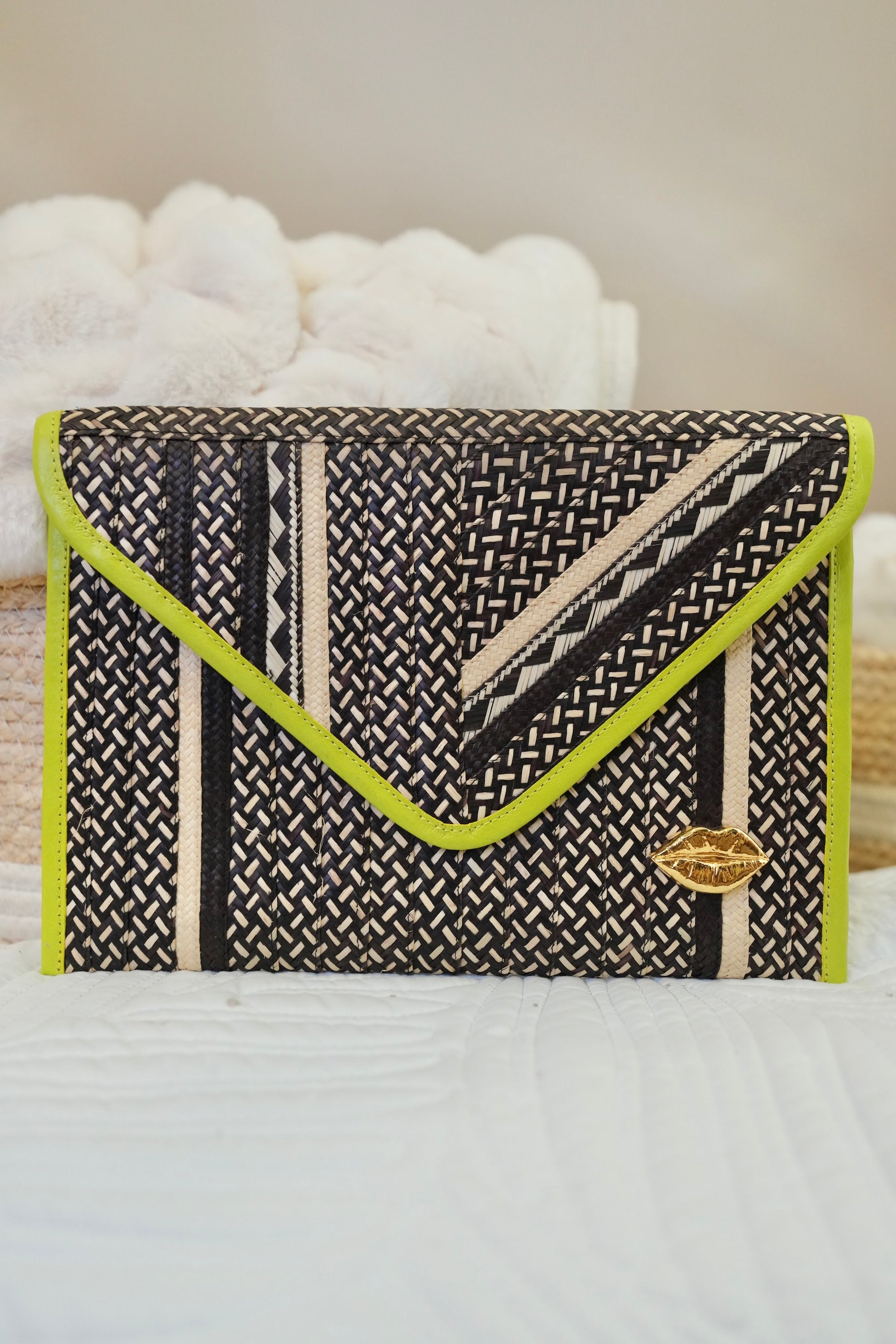 Este clutch Bluelips resalta la belleza de las fibras naturales a través de un patrón artesanal sofisticado.