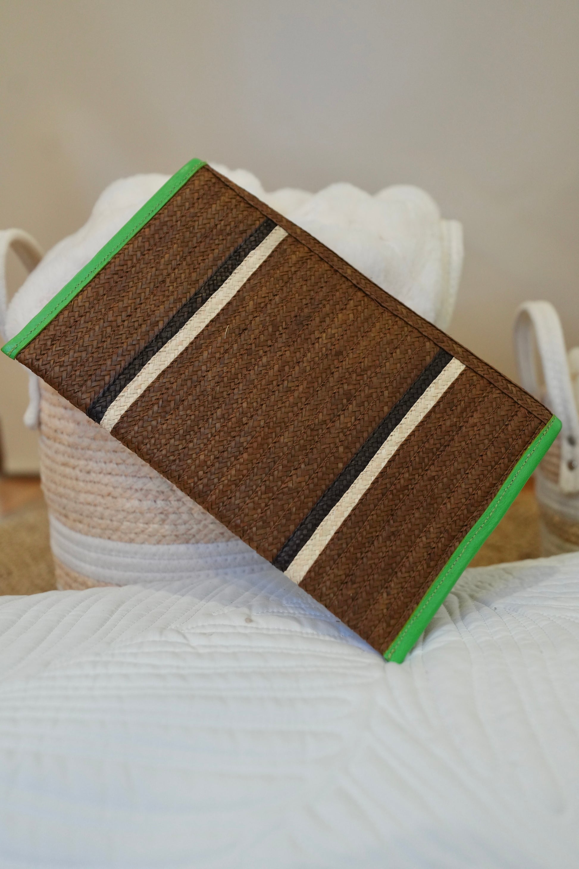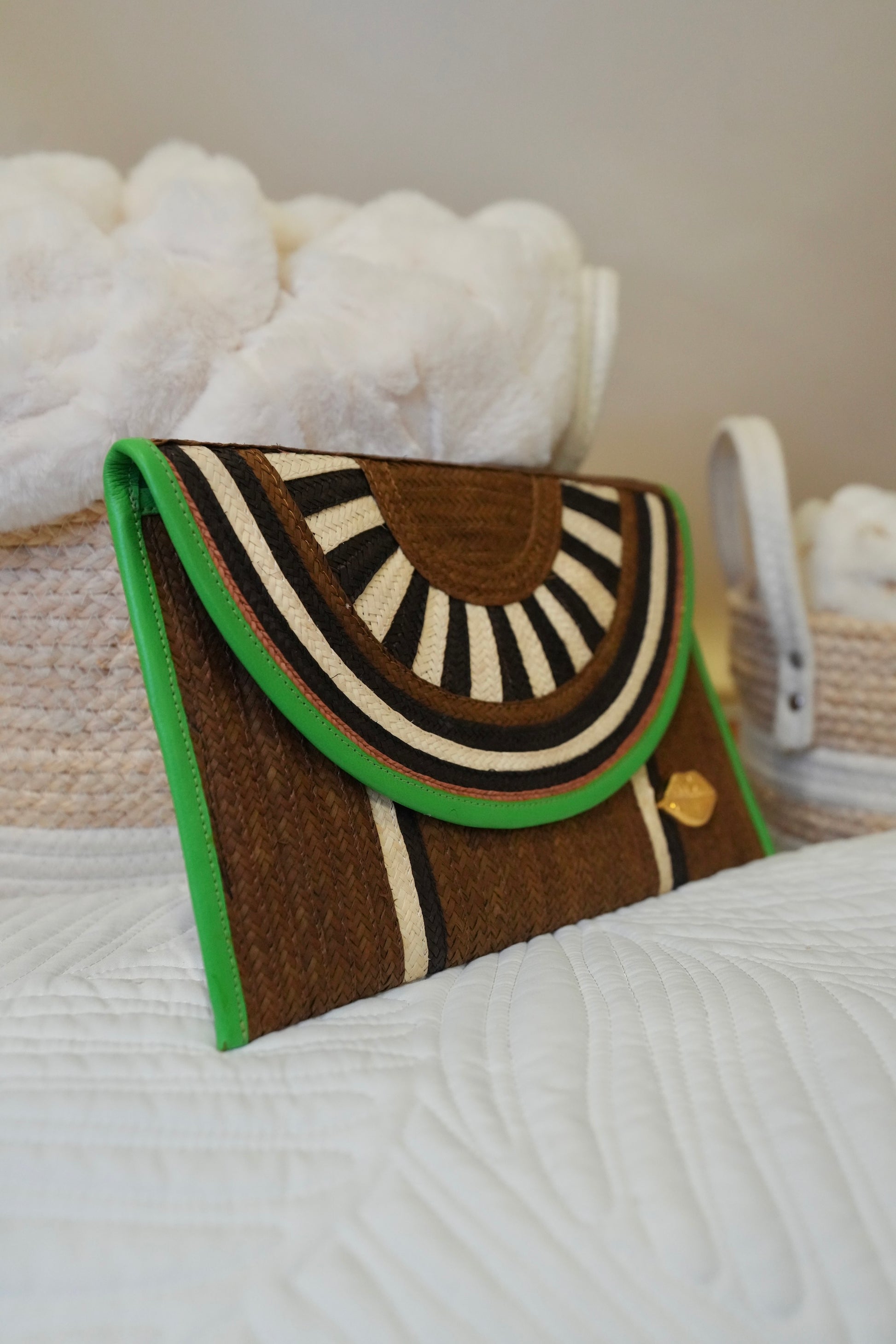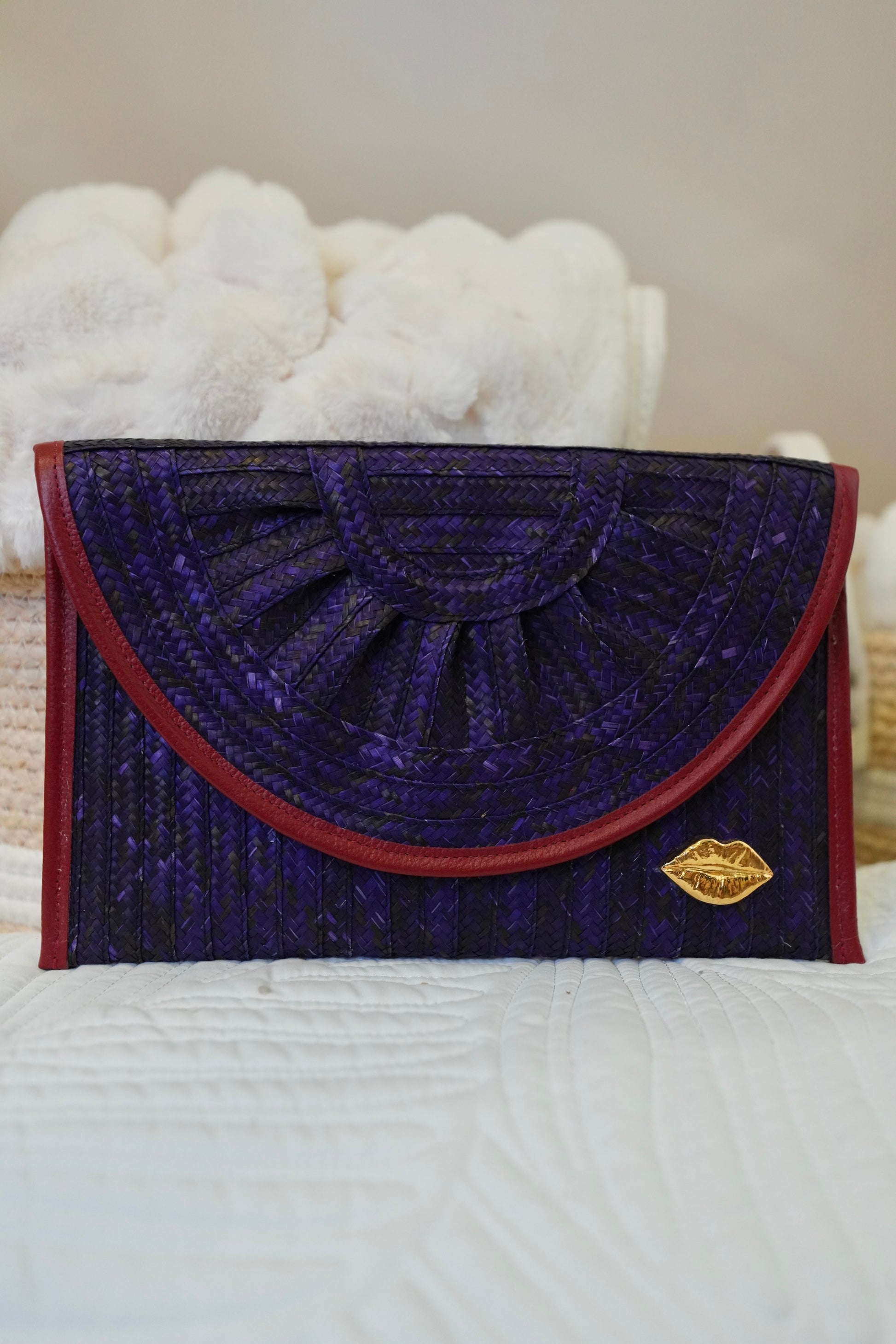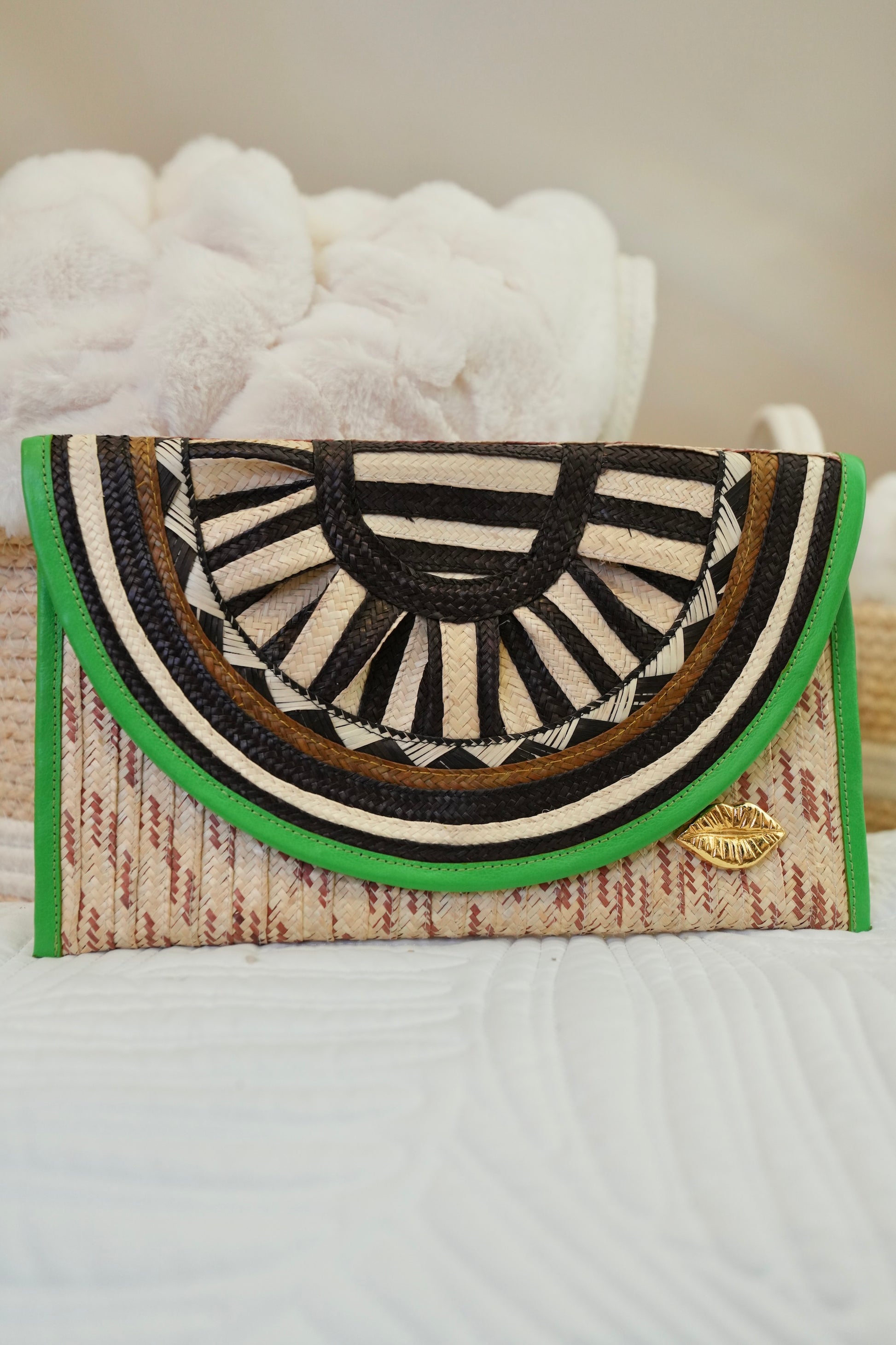 Este clutch Bluelips resalta la belleza de las fibras naturales a través de un patrón artesanal sofisticado.