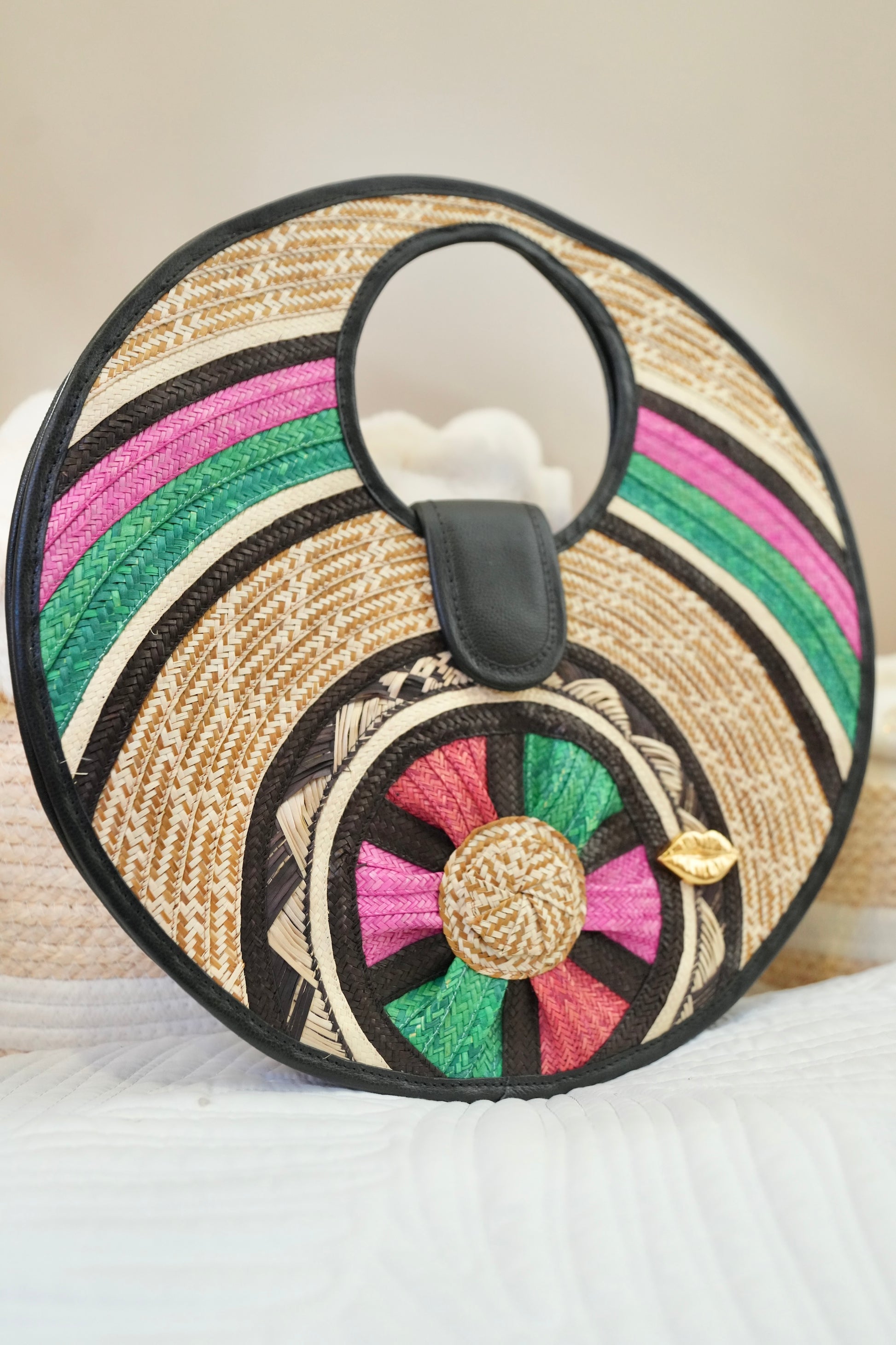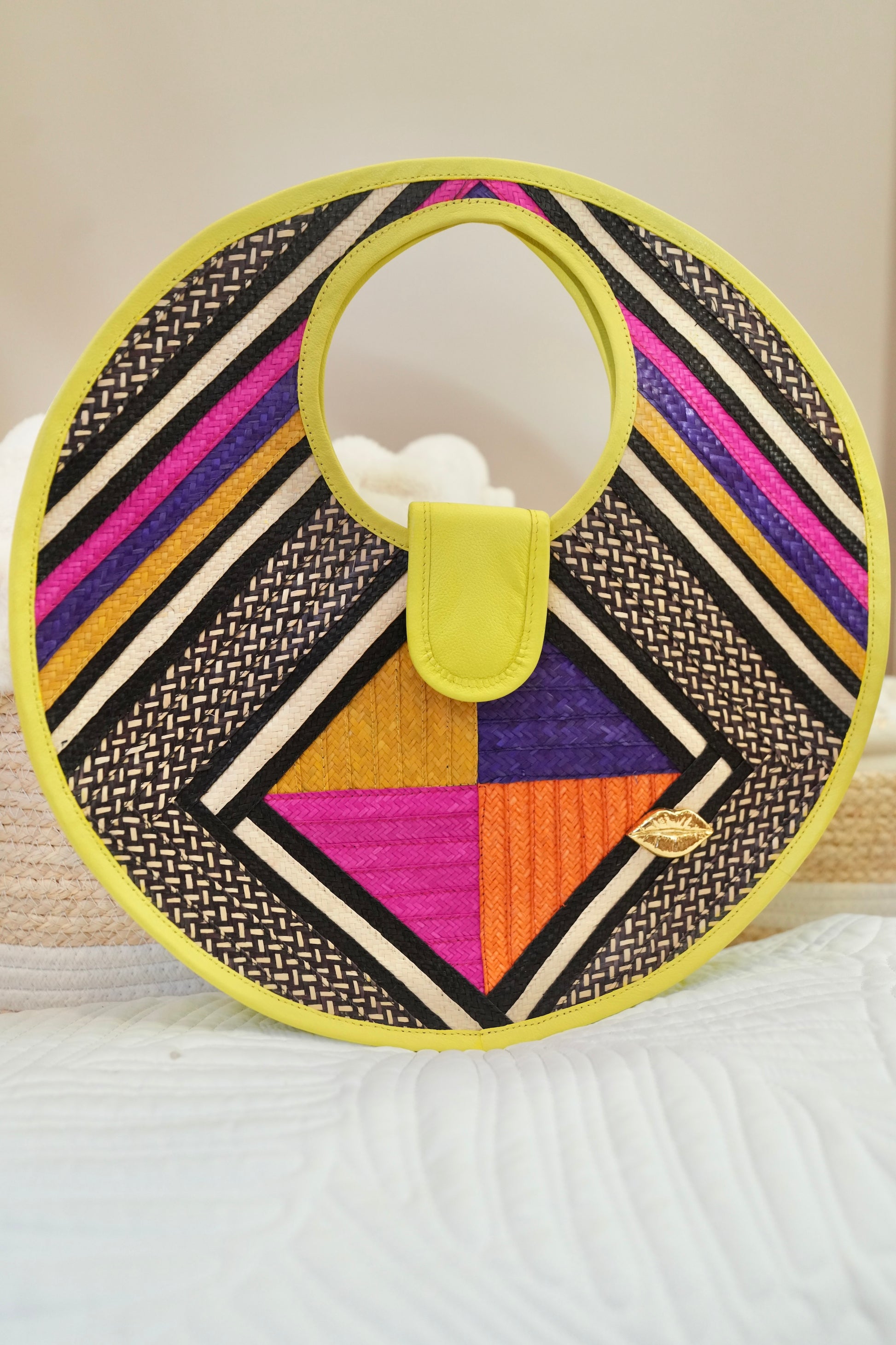 A piece that honors its origins with a contemporary vision. Nativa blends woven fibers with vibrant accents and a fuchsia leather finish, creating a bag with artistic presence and a distinctive character.