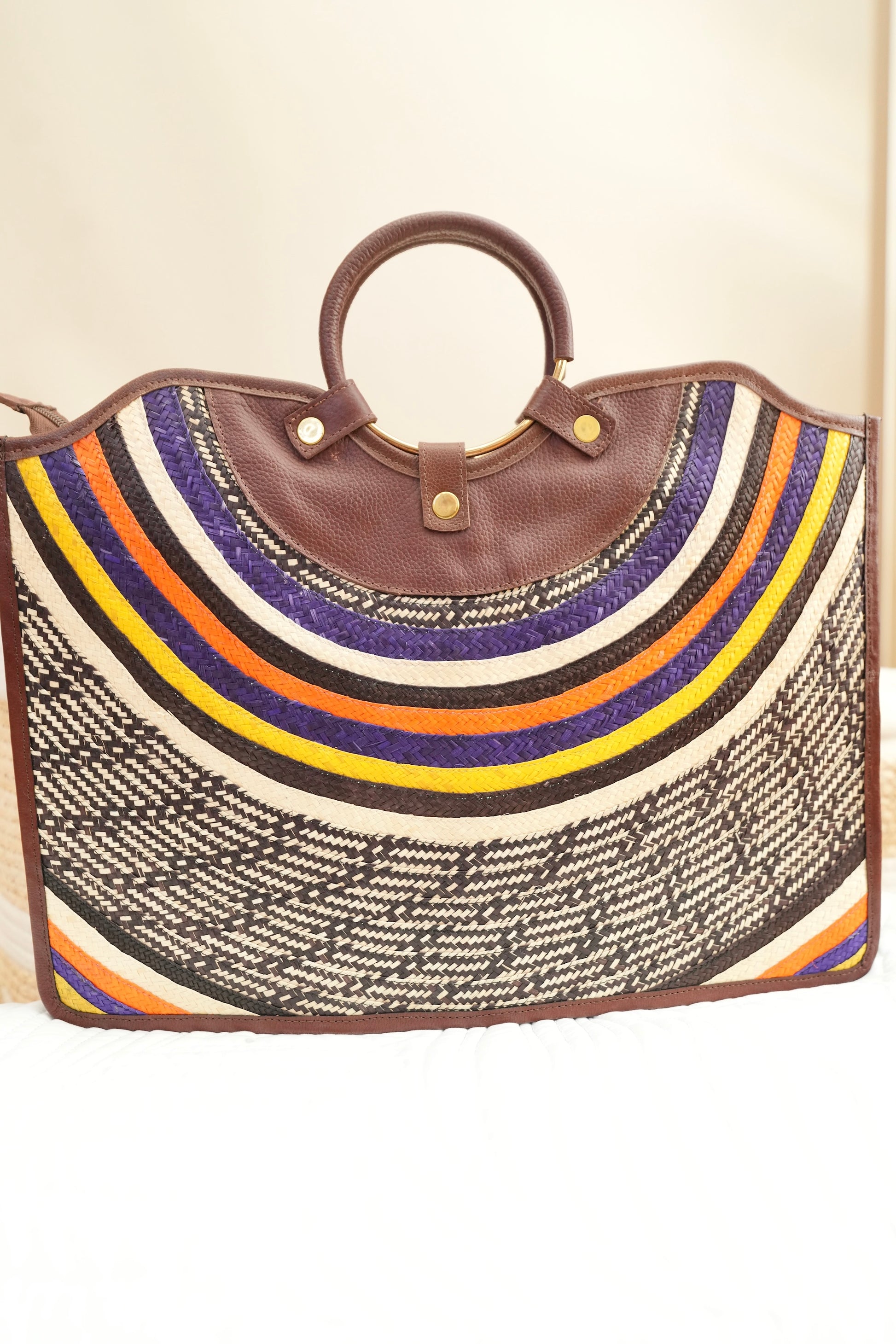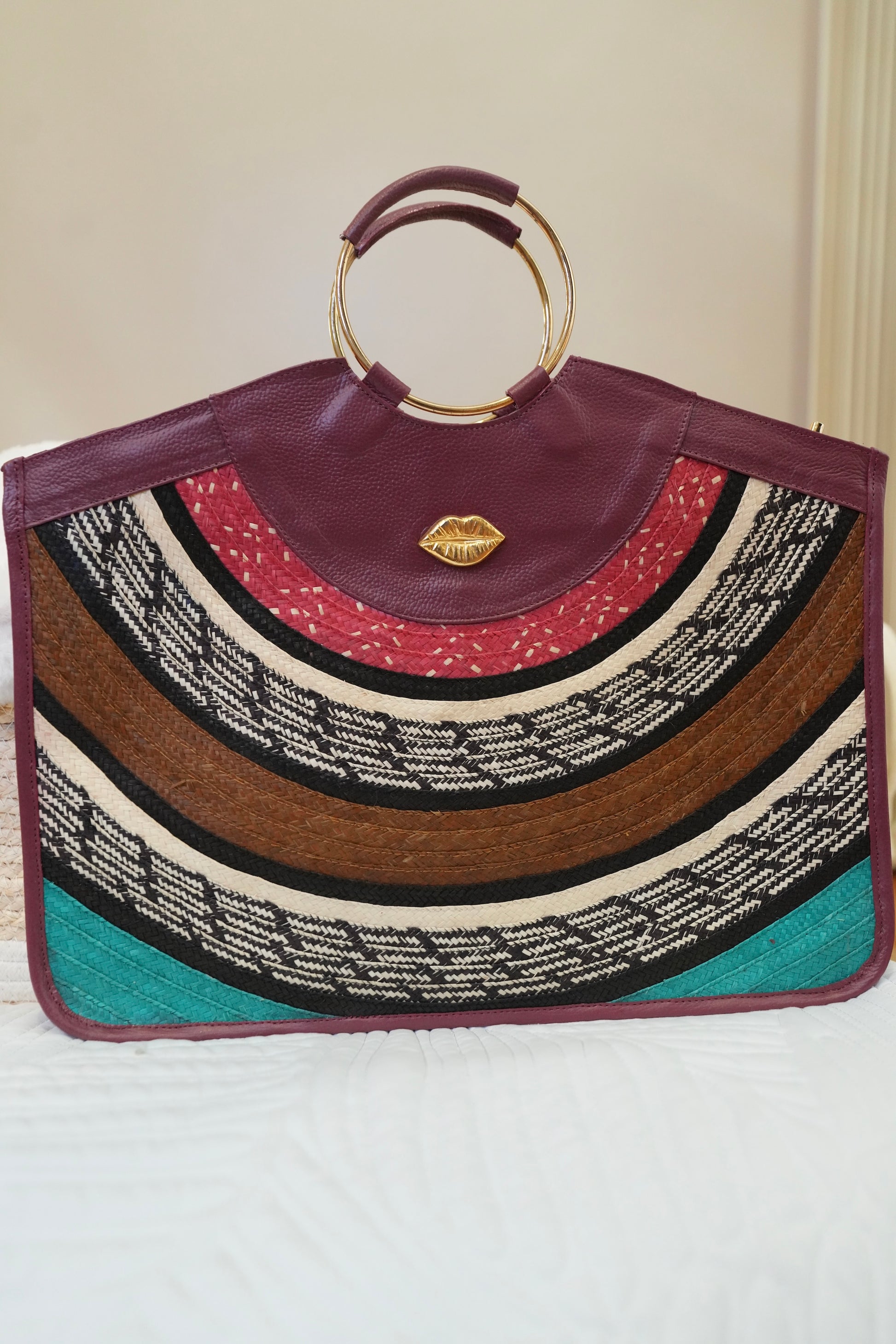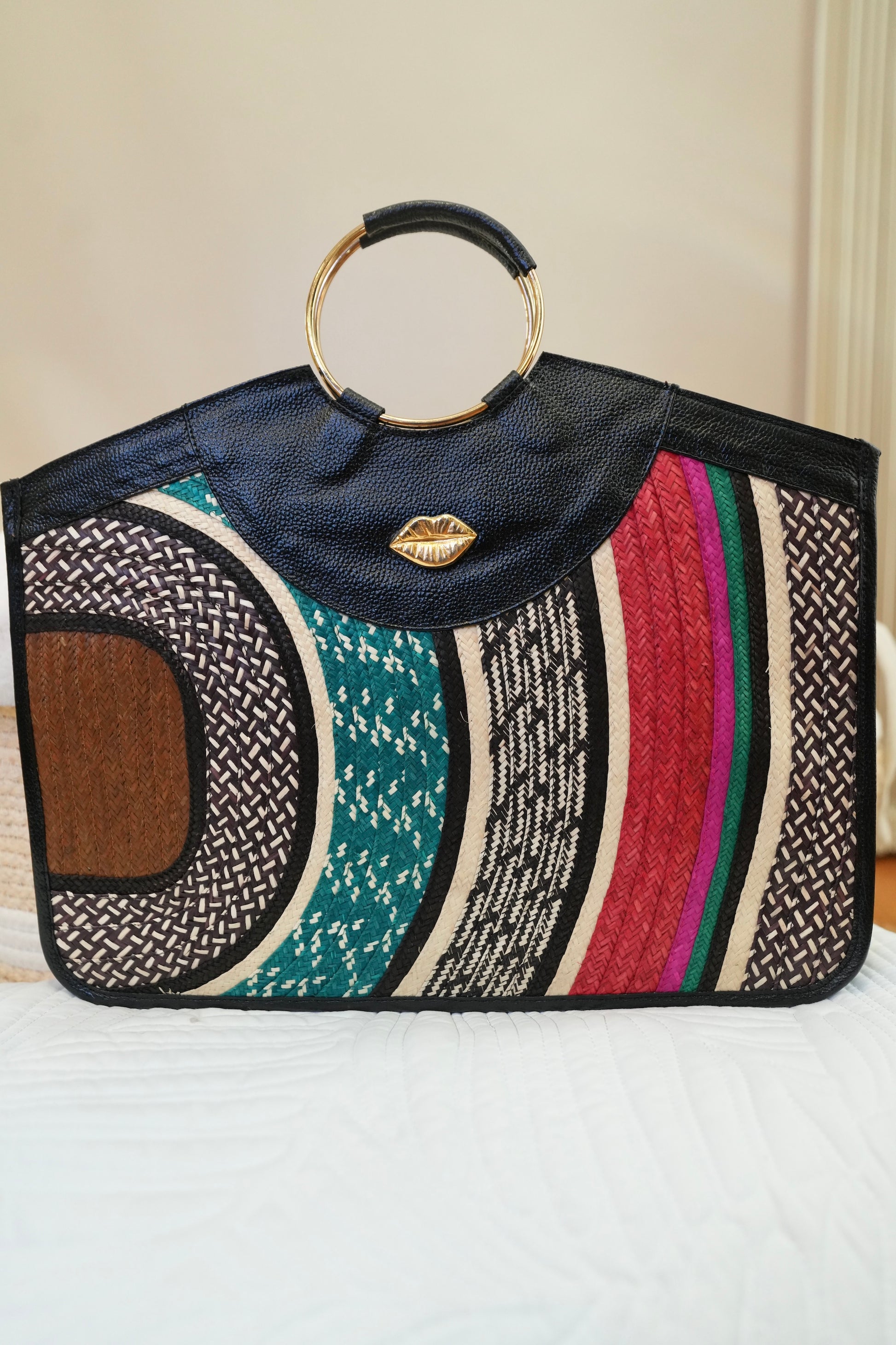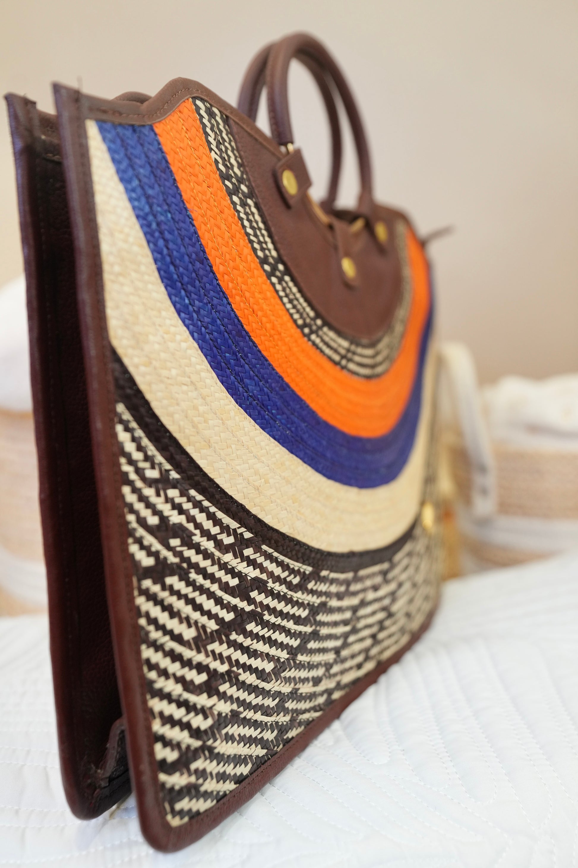 Our rectangular bag redefines modern elegance with premium leather and handcrafted caña flecha weaving. Its spacious structure allows you to carry your iPad and even your laptop without compromising sophistication.