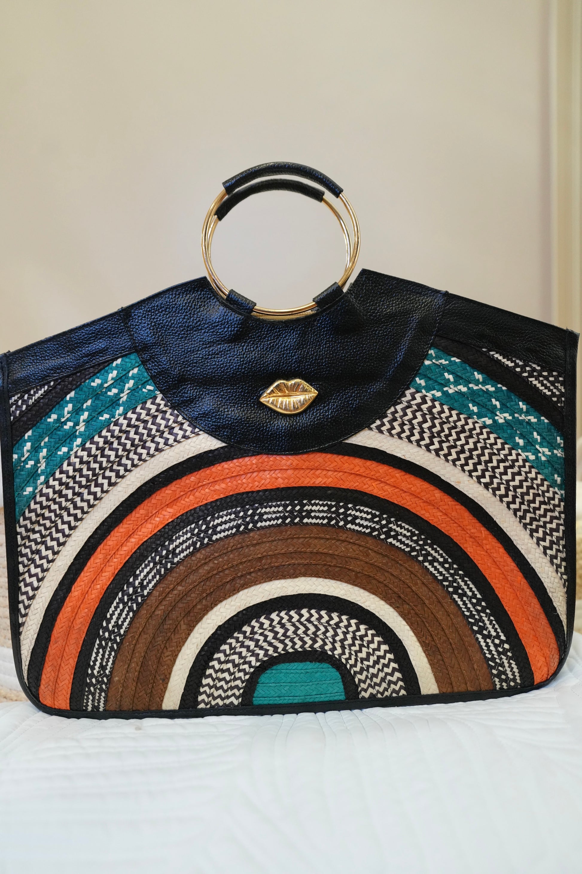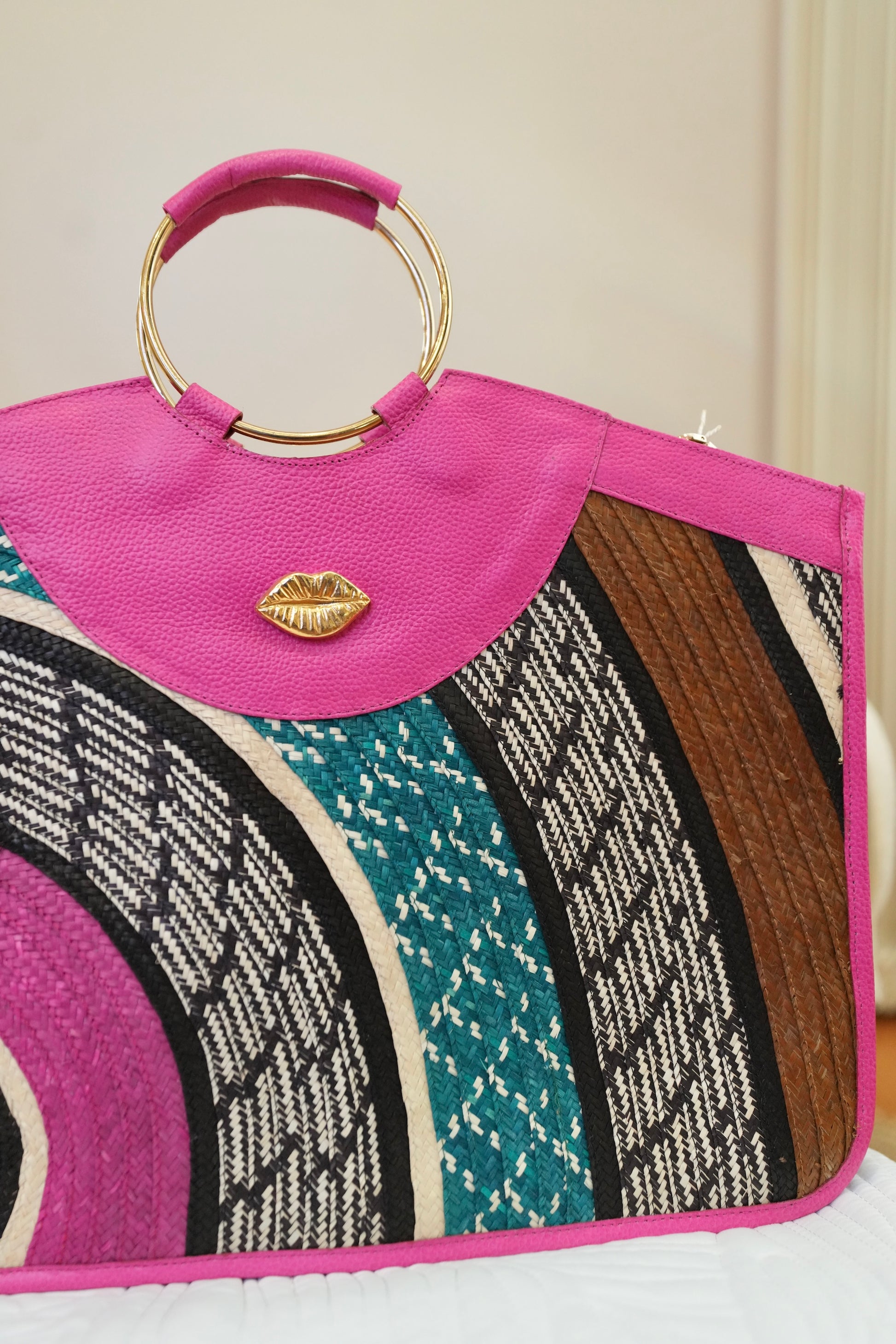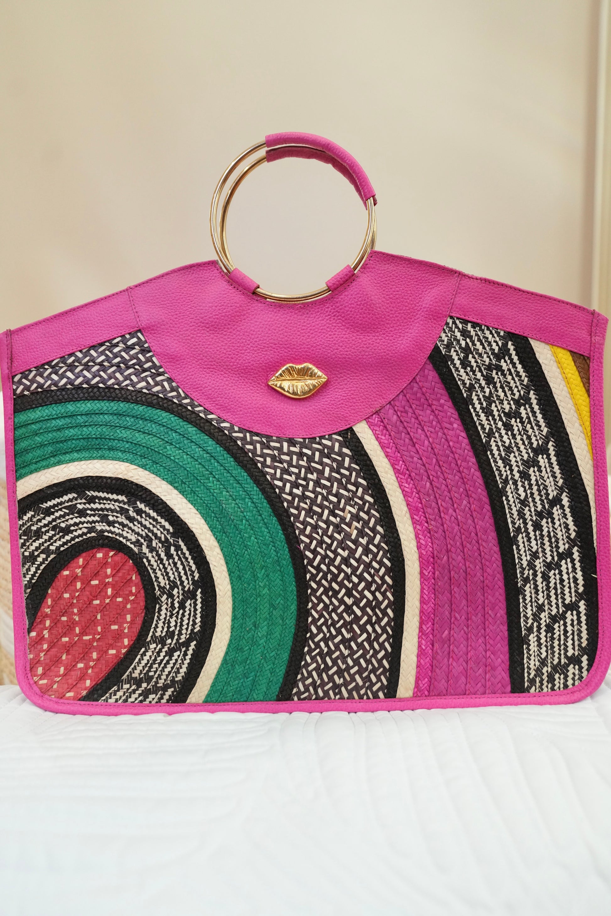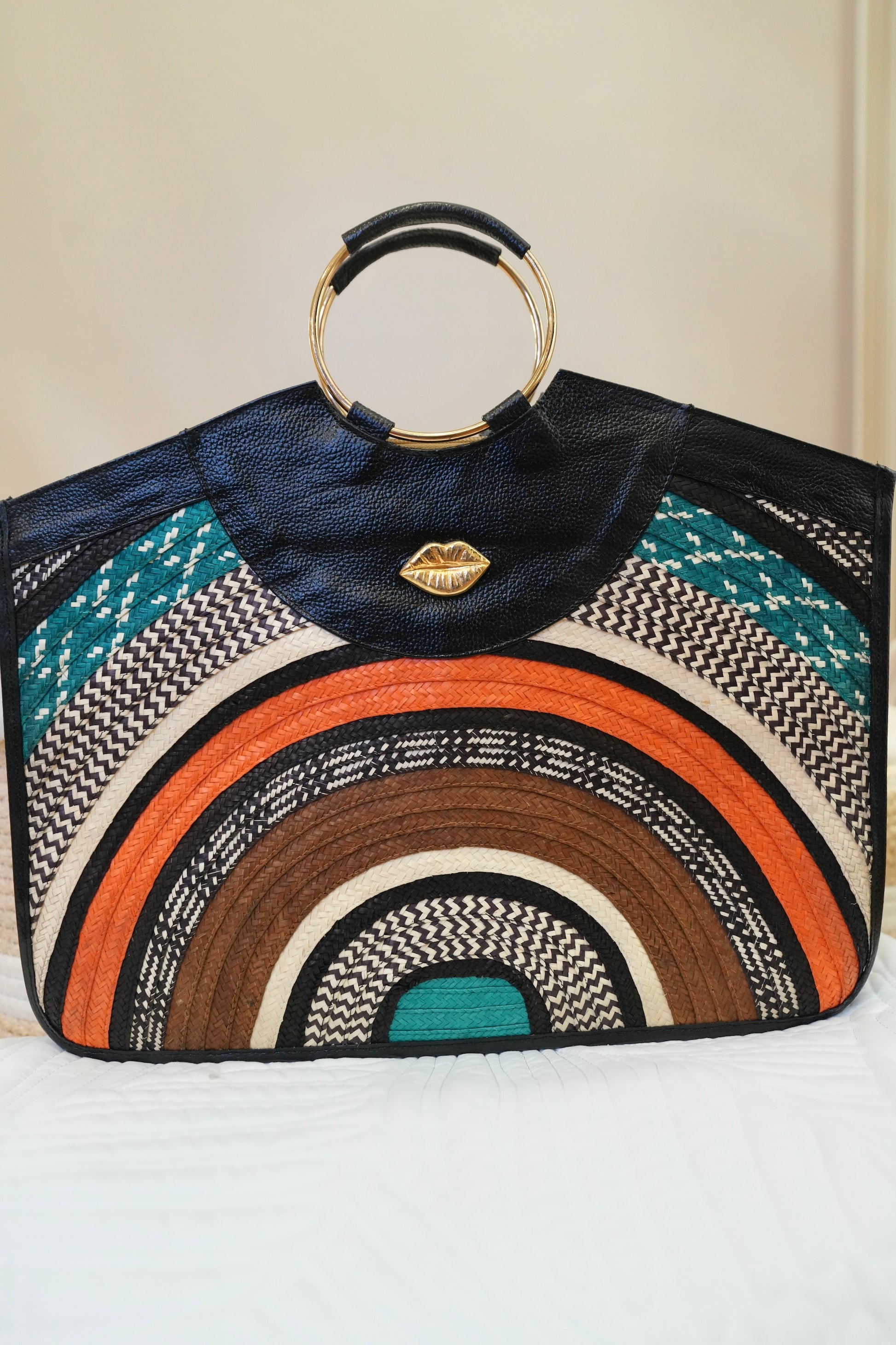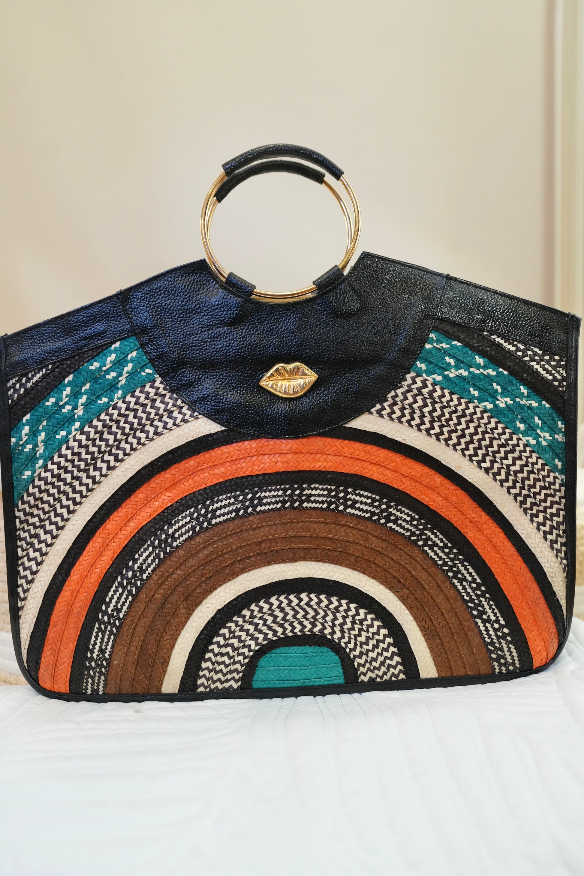 Our rectangular bag redefines modern elegance with premium leather and handcrafted caña flecha weaving. Its spacious structure allows you to carry your iPad and even your laptop without compromising sophistication.